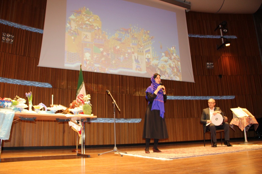 بهاره جهاندوست روایت نامگذاری نوروز توسط جمشید و داستان بیژن و منیژه را از شاهنامه به زبان فارسی و انگلیسی نقل کرد که با ضرب نوازی سعید گرجامی از پیشکسوتان موسیقی زورخانه ای مقیم اروپا همراه بود.
